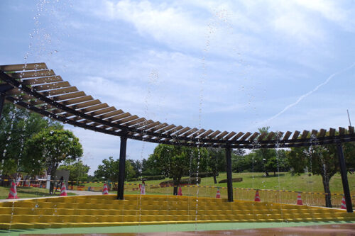 噴水広場に入ると、一定時間水が飛び出す仕組みです。
