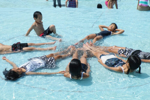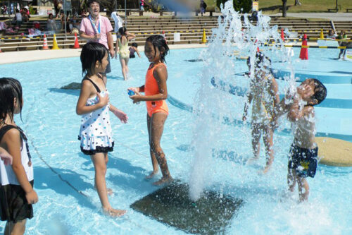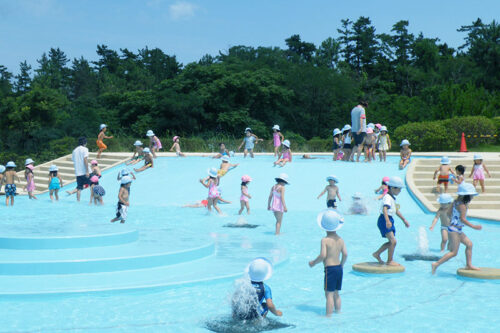 - 大人の方(幼児の付き添い)・・・ひざ下まで水につかる程度であれば水着の着用は不要ですが、水の遊び場の滑り台で一緒に滑る場合などひざ上も水につかる場合は、大人の方も水着を着用してください。